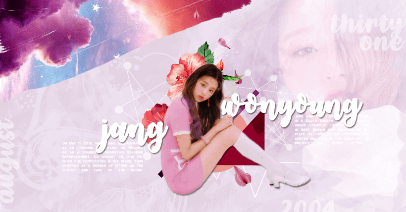 Her official color is pink.She is part Taiwanese and her name in Chinese is Chang Yuanying. Her father is ethnically Korean but grew up in Taiwan while her mother is part Taiwanese and part Korean.She has an older sister (3 years older) and enjoys spending time with her when she’s at home.Her father is a music teacher.She can speak English.Her favorite ice cream flavor is mint chocolate.She was invited to Dispatch’s Girl Group Maknaes promotional Christmas party.Her birthday was the same day as the Produce48 final and so she debuted and got the center position on her birthday.She is the tallest member.Her dance specialty is girl’s hip hop.Wonyoung used to wear braces.She trained for one year and two months,She appeared in YDPP‘s Love It Live It MV.Wonyoung shares a room with Chaeyeon.She can wink 63 times in 30 seconds.Wonyoung is ranked 88th on TC Candler “The 100 Most Beautiful Faces of 2018”.ㅤㅤㅤ
